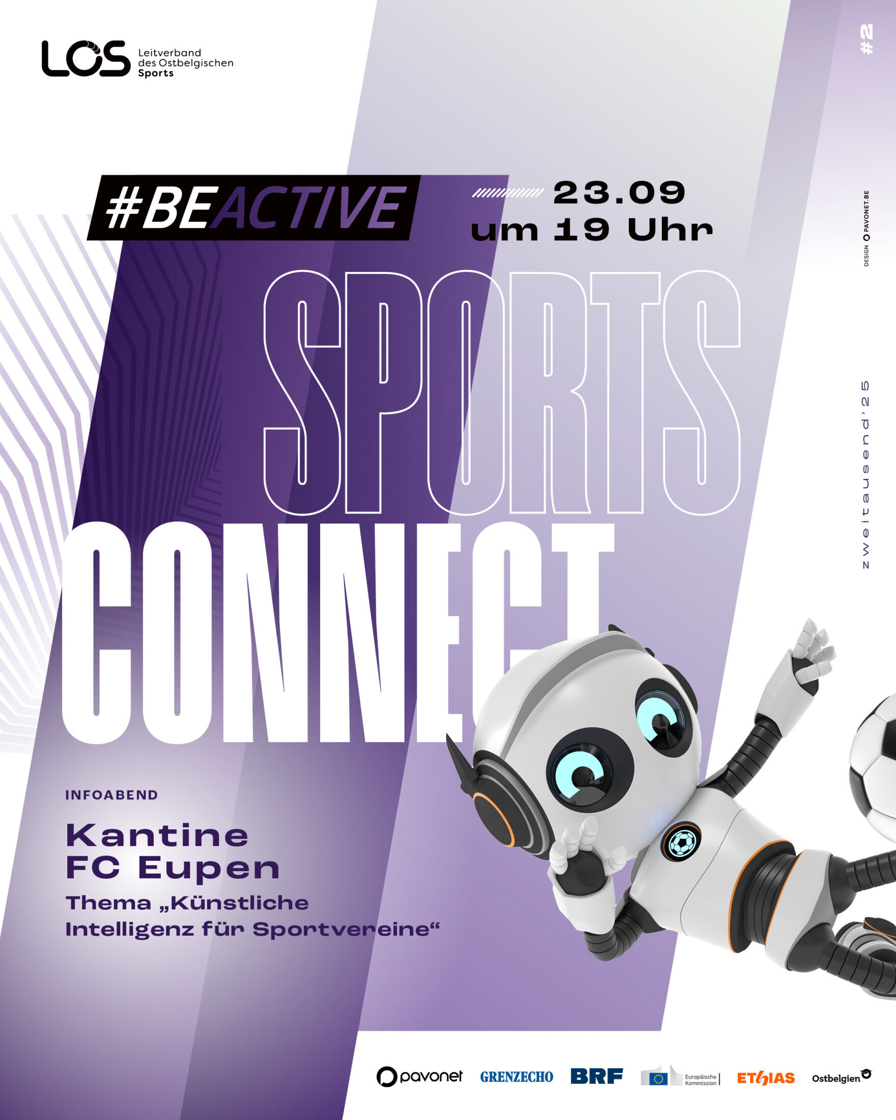 Am Dienstag, dem 23. September 2025, starten wir mit einem Infoabend zum Thema „Künstliche Intelligenz für Sportvereine“. Dieser wird von 19.00 bis 21.00 Uhr in der Kantine des FC Eupen (Judenstraße 91, 4700 Eupen) stattfinden. Dabei gibt Jan Hilgers von Medienwelten aus St. Vith Einblicke in digitale Chancen für Vereinsarbeit, wobei den Vereinen praxisnahe Impuls mitgegeben werden sollen.